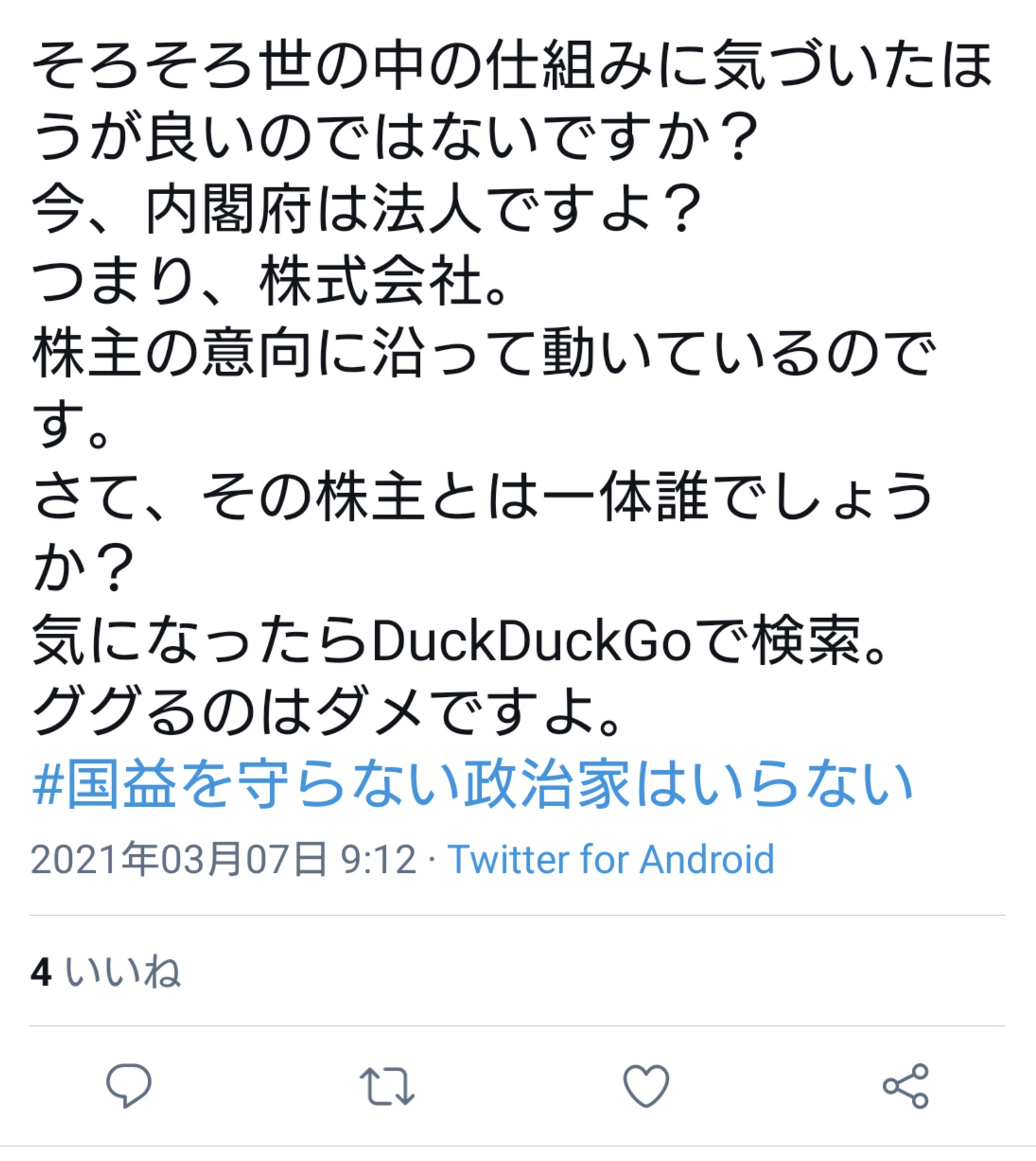 - 安倍晋三で検索して2番めにゲンダイが出てくるのもduckduckgoだけ