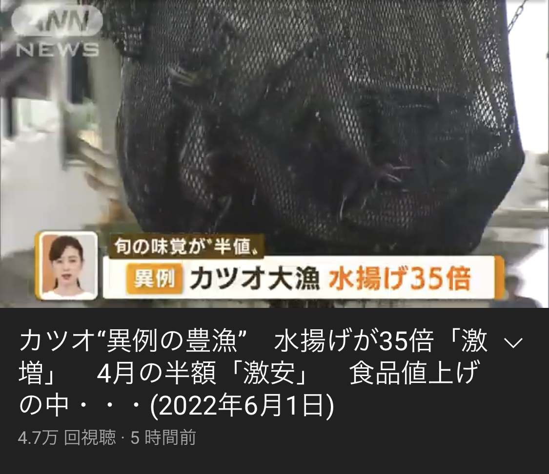 スーパーに並んでるカツオの値段変わらんけどいつ安くなるの?