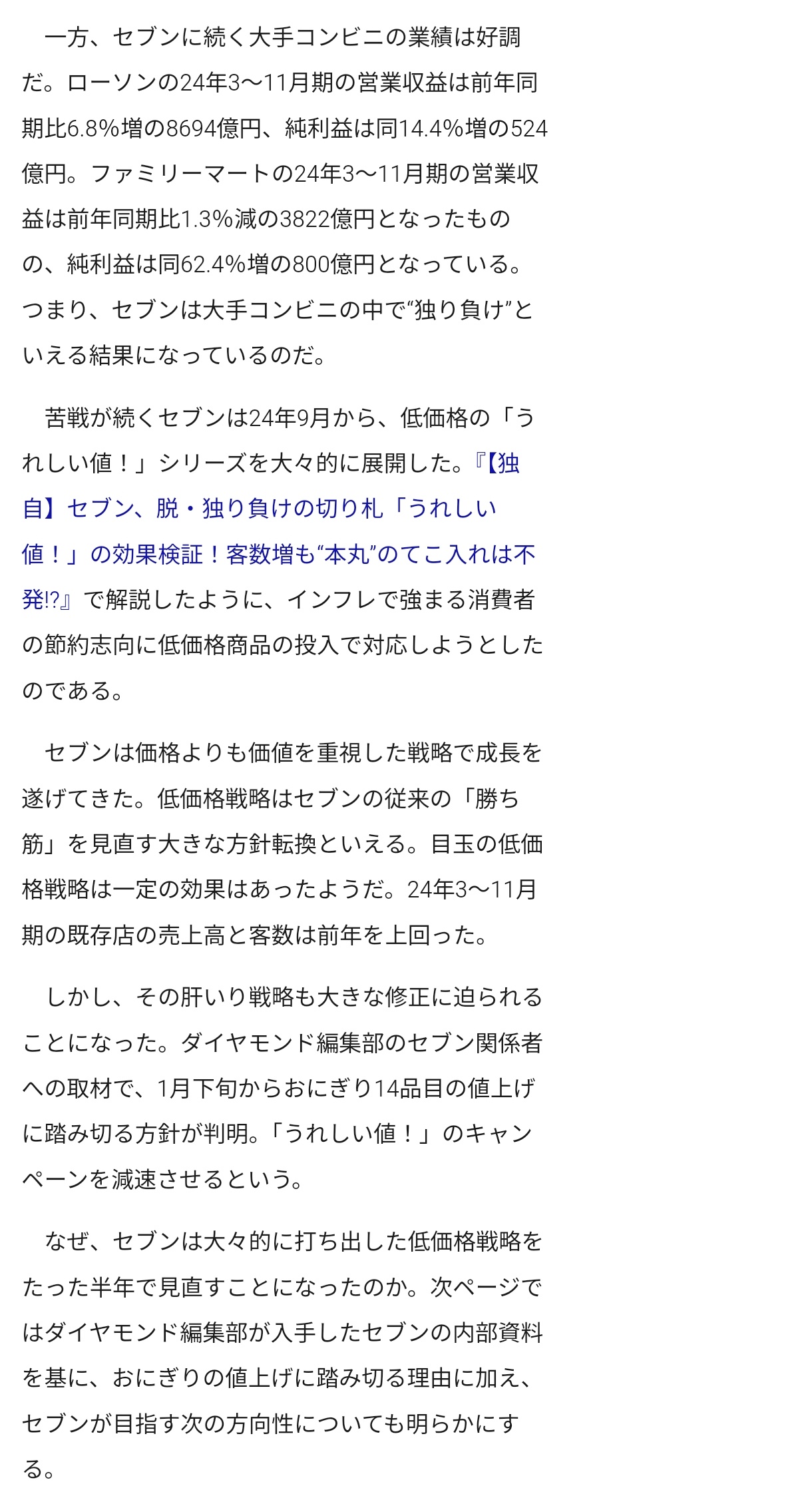 セブン「底上げ戻しまーす」 - 92 名前:ひみつの名無しさん 投稿日時:2025/01/17(金) 21:49:47.87 ID:Z7YC3AI00