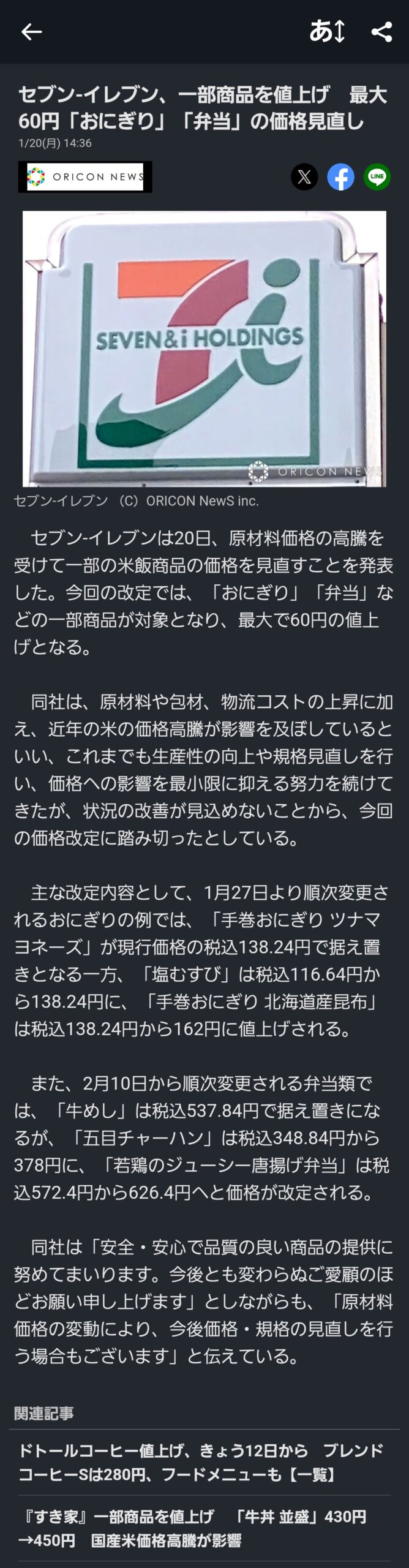 セブンが事前値上げ告知とか正気の沙汰じゃない - 151 名前:ひみつの名無しさん 投稿日時:2025/01/20(月) 15:18:36.69 ID:ojp3vKe80