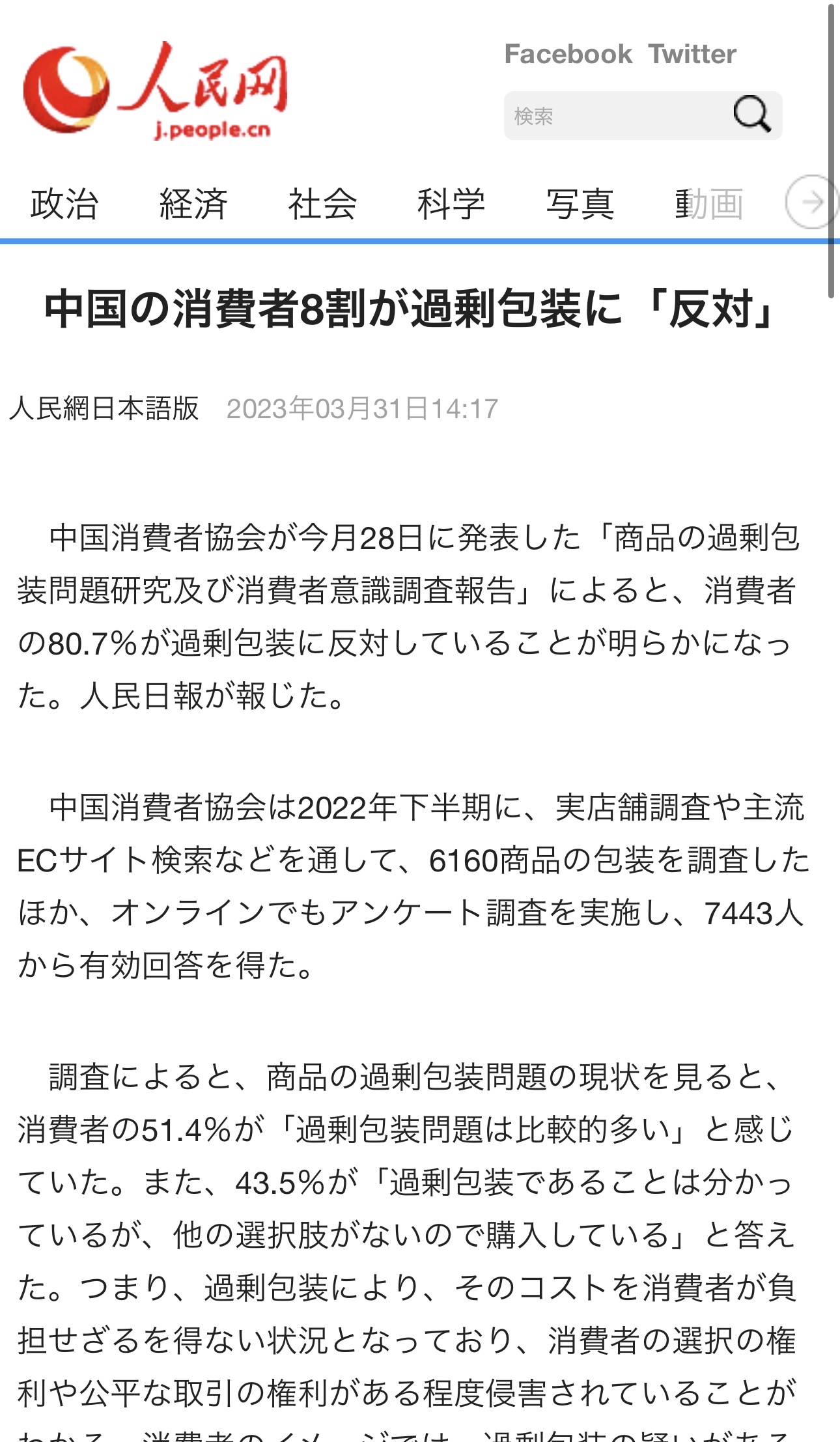 - 過剰包装を控えろって決まったら、よい人民の8割は反対だぞって勧告してくる中国の政府とマスコミ