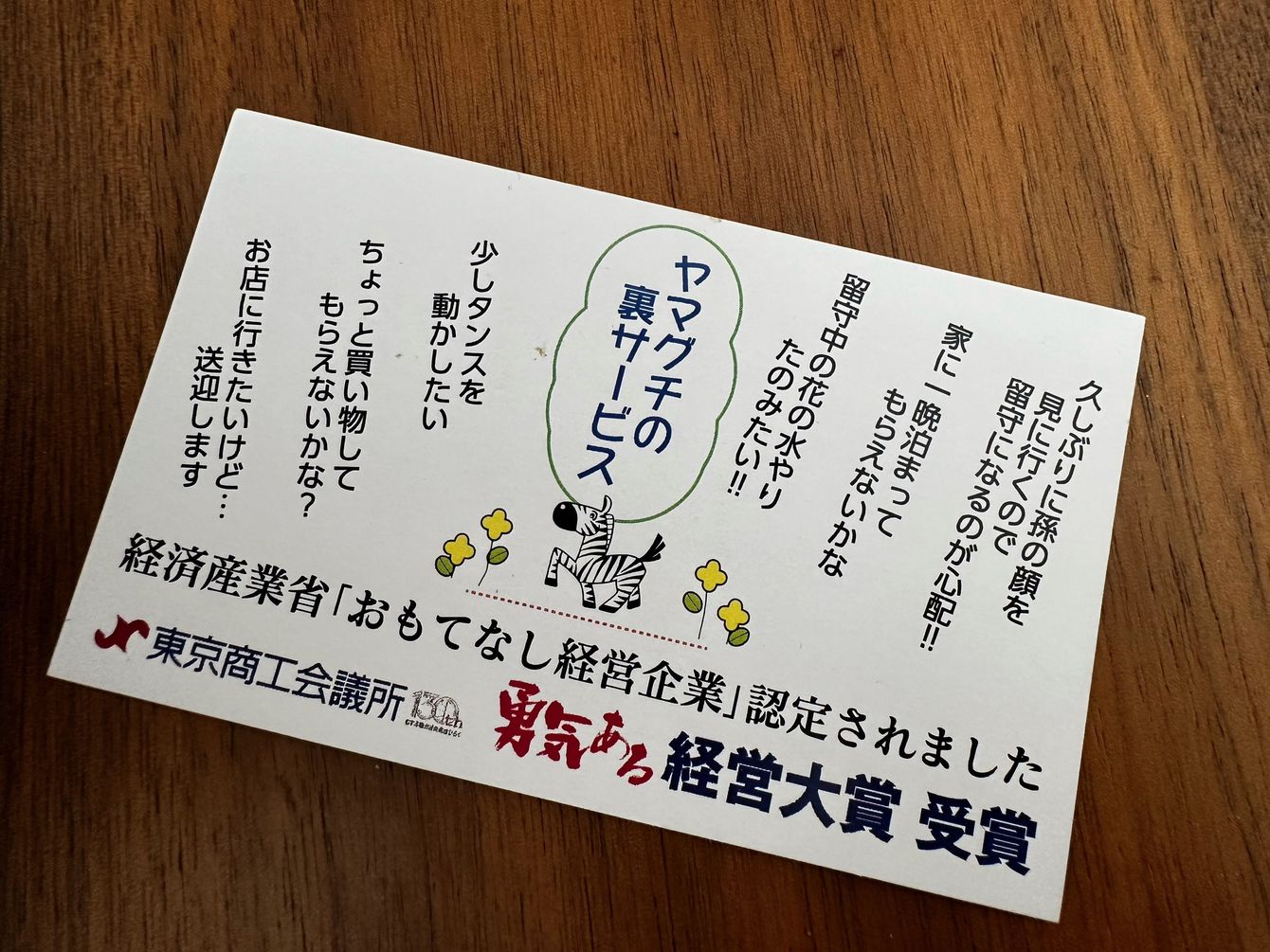 値上げをすること自体は容易かもしれない。でも、どうやってきちんと収益を上げるのか。声高に宣言したはいいものの確信が持てない中、ある出来事がヤマグチの向かうべき道を決定づけた。「営業社員と一緒にあるお客さんのところへ修理に行ったんですよ。そしたらね、『お父さん、夏の暑い時期に2、3日家を空けたら、お父さんが大切にしているベランダの植木の水やりはどうするの? 犬のエサはどうするの?』と夫婦で旅行の話をしている。なんだ、そんなことで困っているのかと思い、とっさに『奥さん、うちでやるからいいよ。水くれなんて。朝やるの、夜やるの、どっち? 犬のエサはドックフードを準備しておいてよ。あと、ポストに新聞や郵便物が入っていたらうちで預かって、旅行から帰った時に持ってくるから。新聞屋に電話しなくたっていいよ』と伝えました」