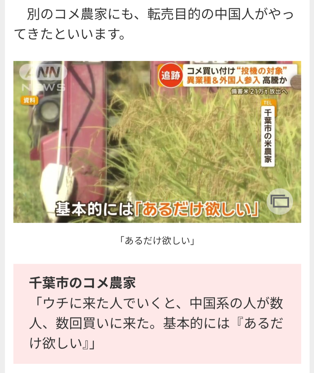 - 中国人は米を品質保って保管できる設備なんか持ってないから溜め込まずにすぐ転売してるはずで