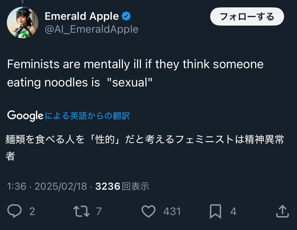 フェミニストも見なくなるといいな - 22 名前:ひみつの名無しさん 投稿日時:2025/02/18(火) 19:13:08.23 ID:P/PQtxVjd