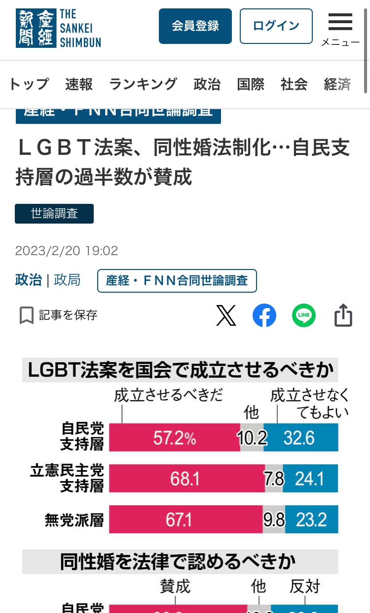- Z世代に限ったら同性婚賛成91%だからな
