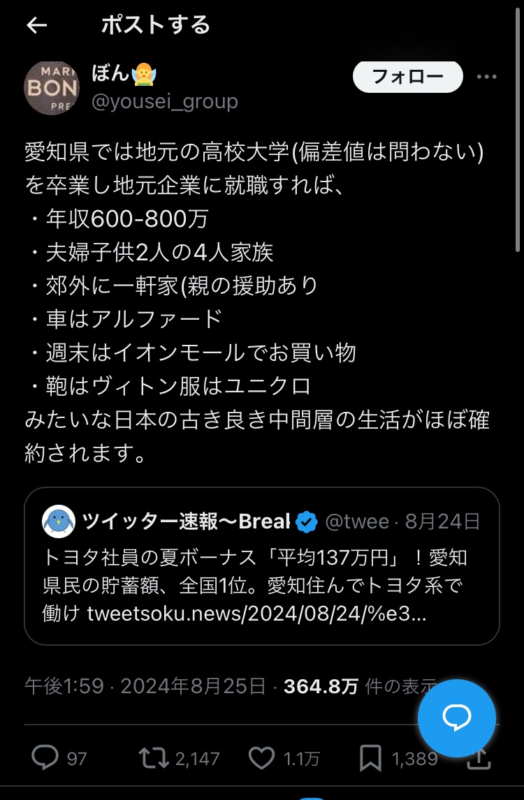 - 東京とは反比例で人口どんどん減ってるらしいやん愛知