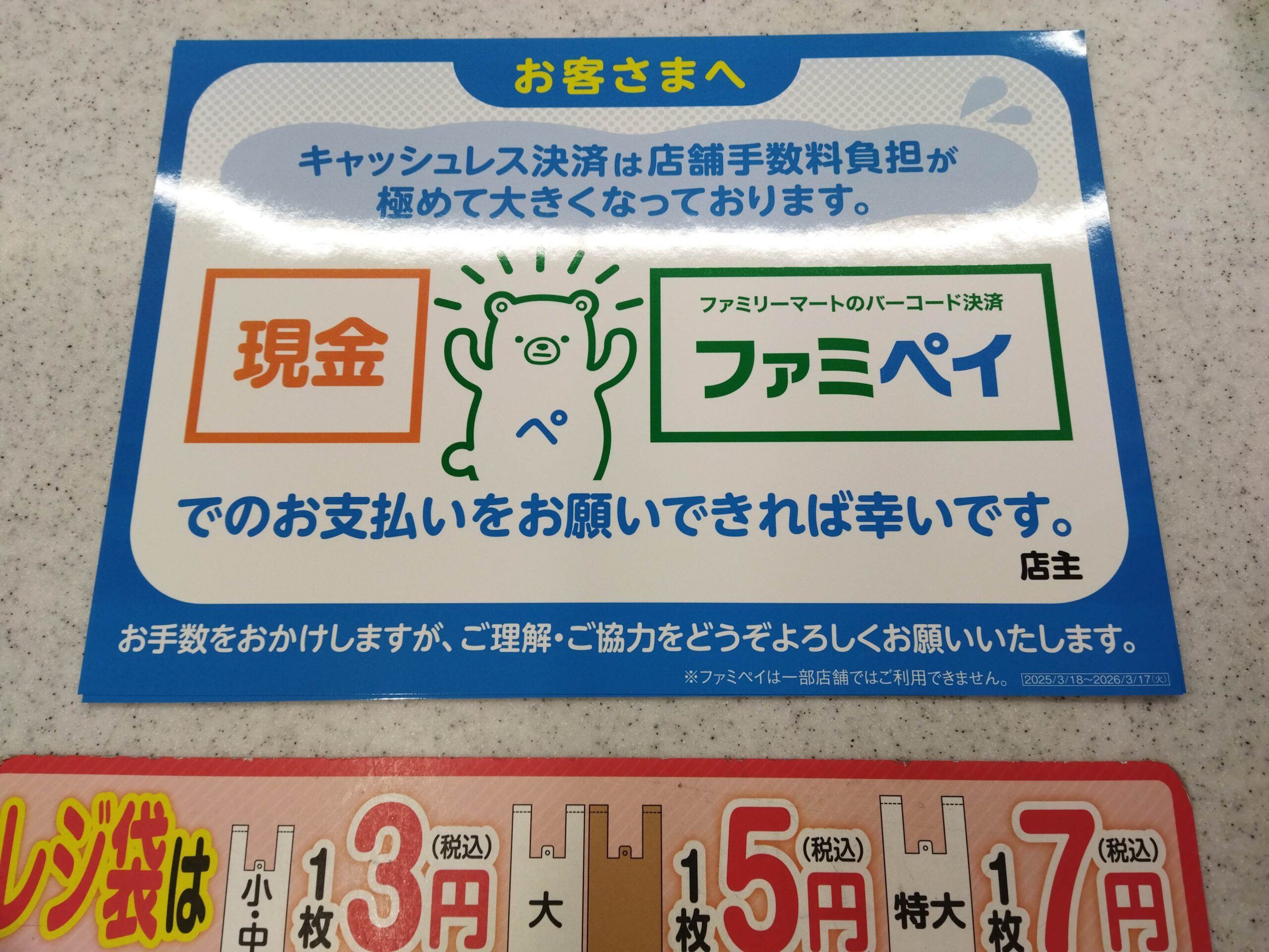 手数料って建前でファミペイに誘導しようとしてるやつか? - 102 名前:ひみつの名無しさん 投稿日時:2025/03/12(水) 22:55:28.79 ID:HqJDTX8W0