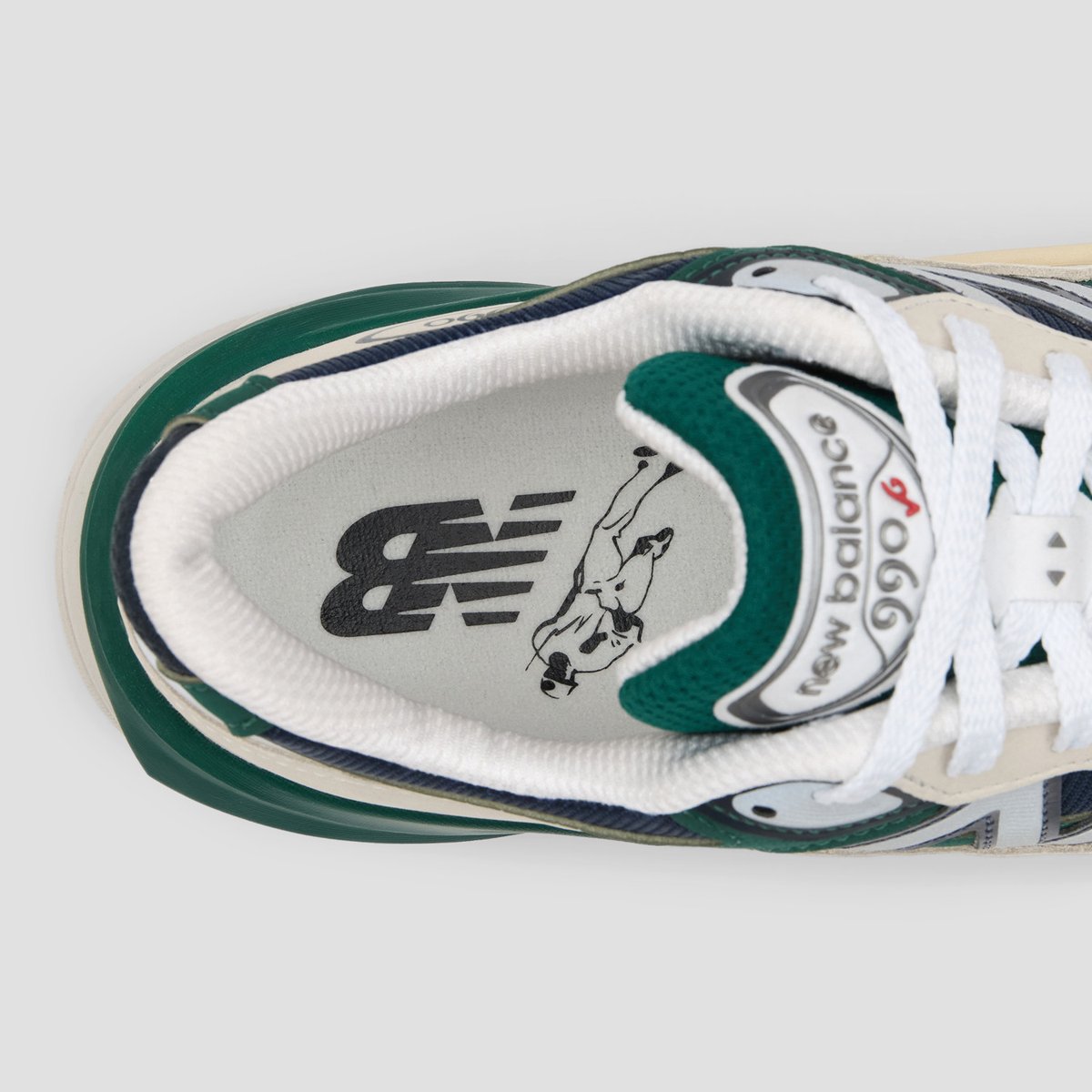 コラボシューズは、「MADE in USA 990v6」をベースに製作。アッパーには、マーシュグリーンにネイビーとホワイトのアクセントをあしらったプレミアムレザーとメッシュを採用した。また、ソックライナーには大谷のシグネチャーロゴをあしらった。価格は4万9500円。https://www.fashionsnap.com/article/2025-03-14/newbalance-ohtani-990v6/