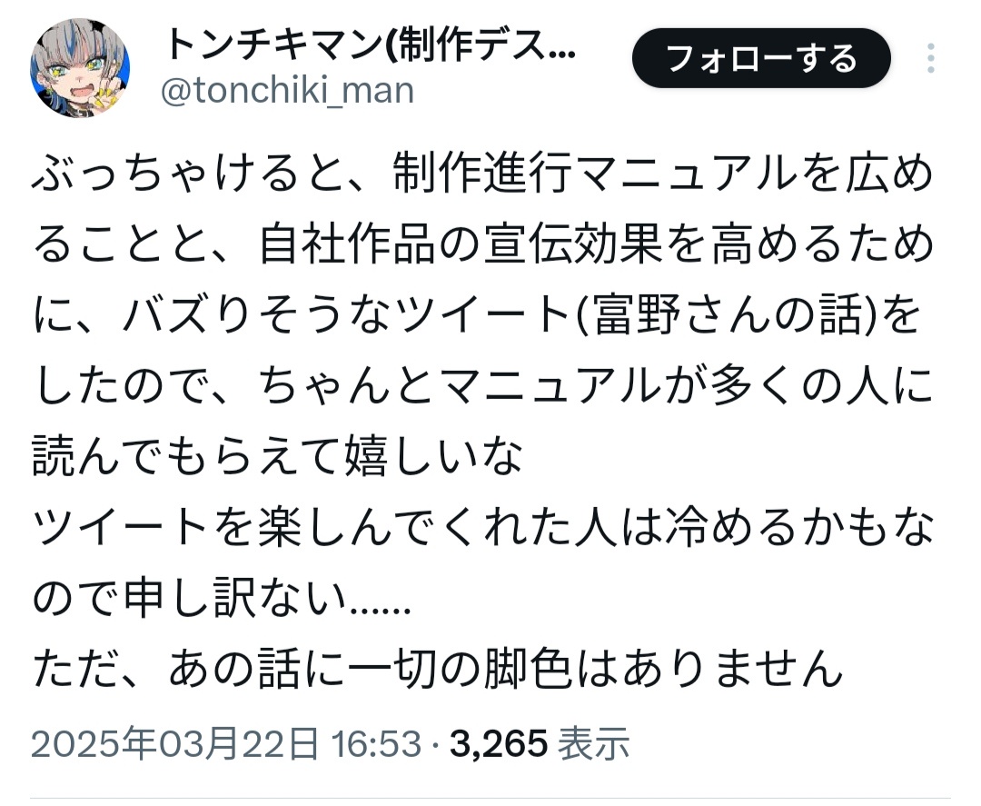 本人の方が作品より面白いのはもっぱらの話 - 25 名前:ひみつの名無しさん 投稿日時:2025/03/23(日) 21:11:03.43 ID:/w61ADAe0