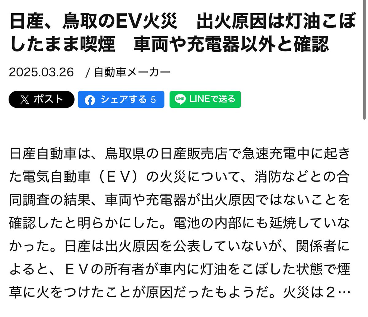 日本人の95%はEVは国産も燃えると思うようになったもう手遅れだよ