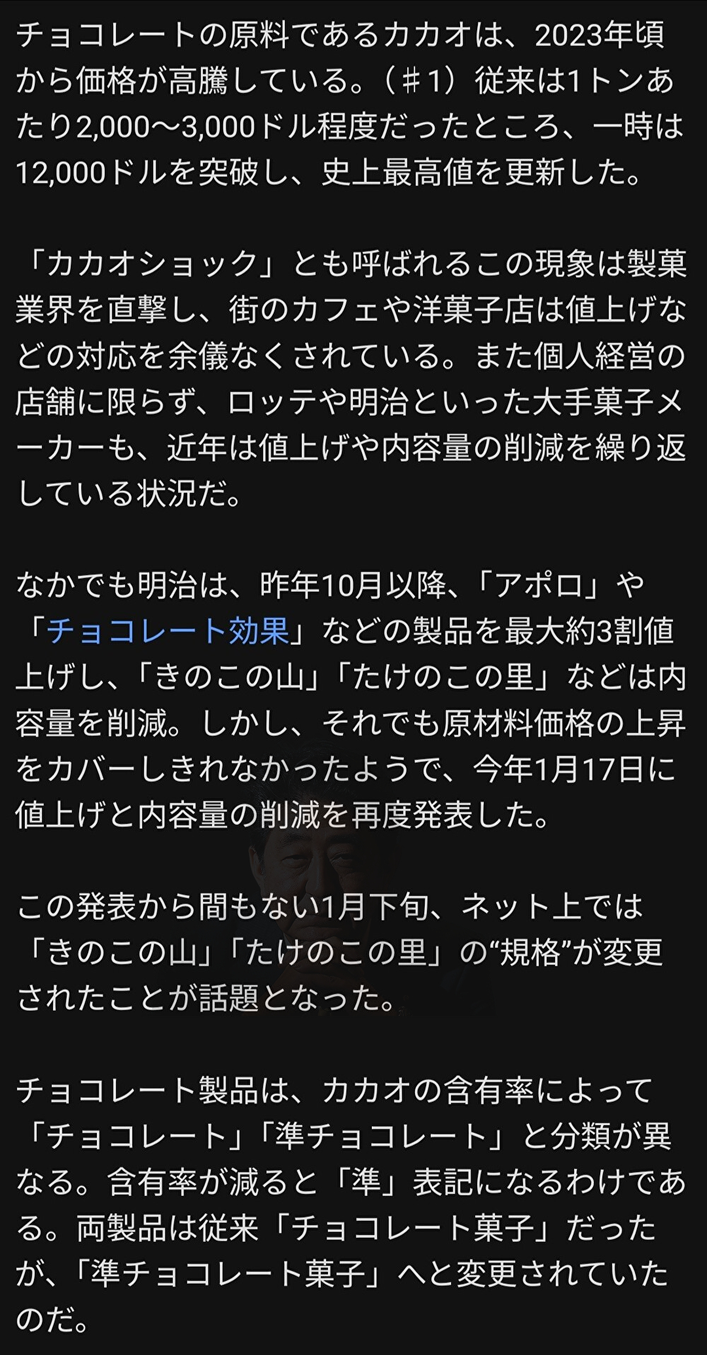 「たけのこの里」値段が安倍になりチョコレートから準チョコレートに変更されて終わる