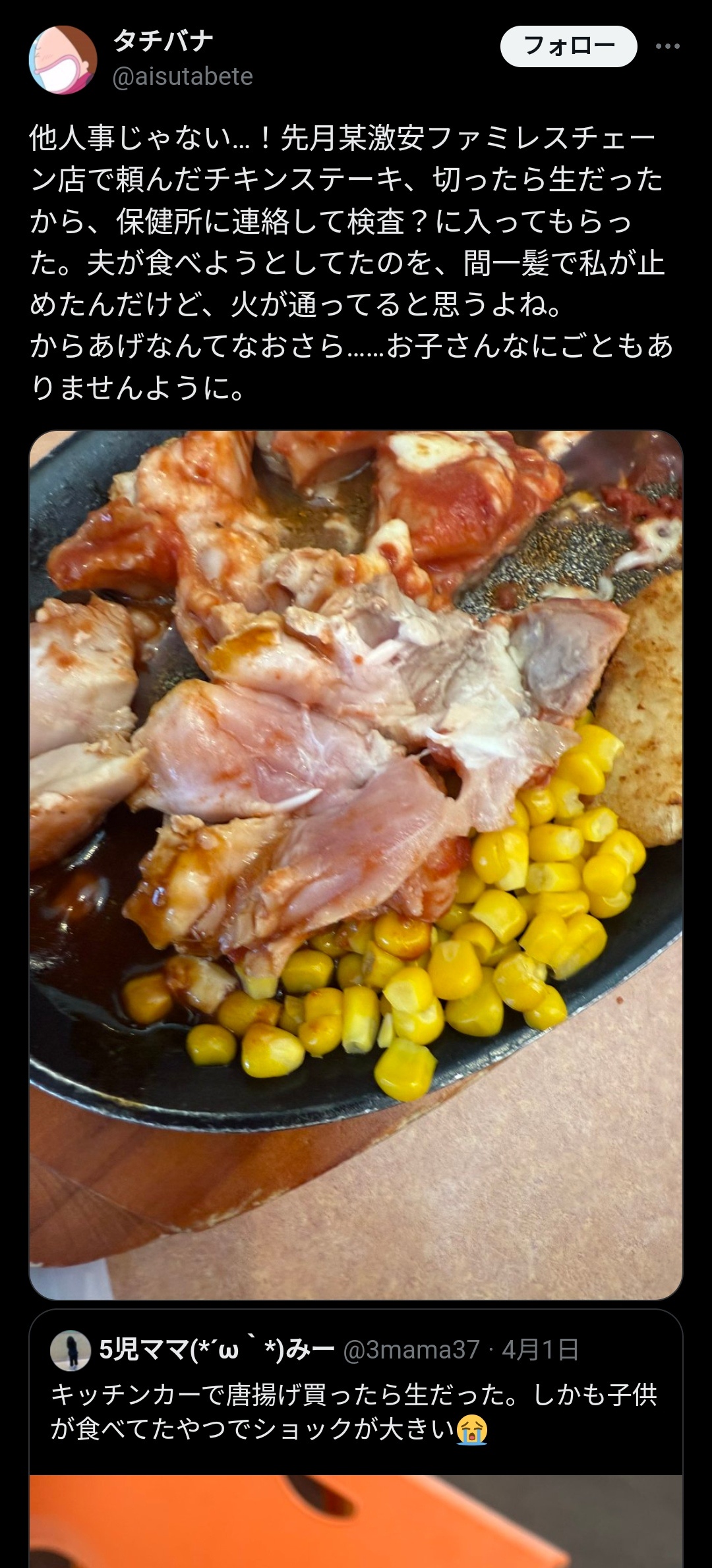 「これは保健所通報案件」キッチンカーで買った唐揚げの中身が生だった