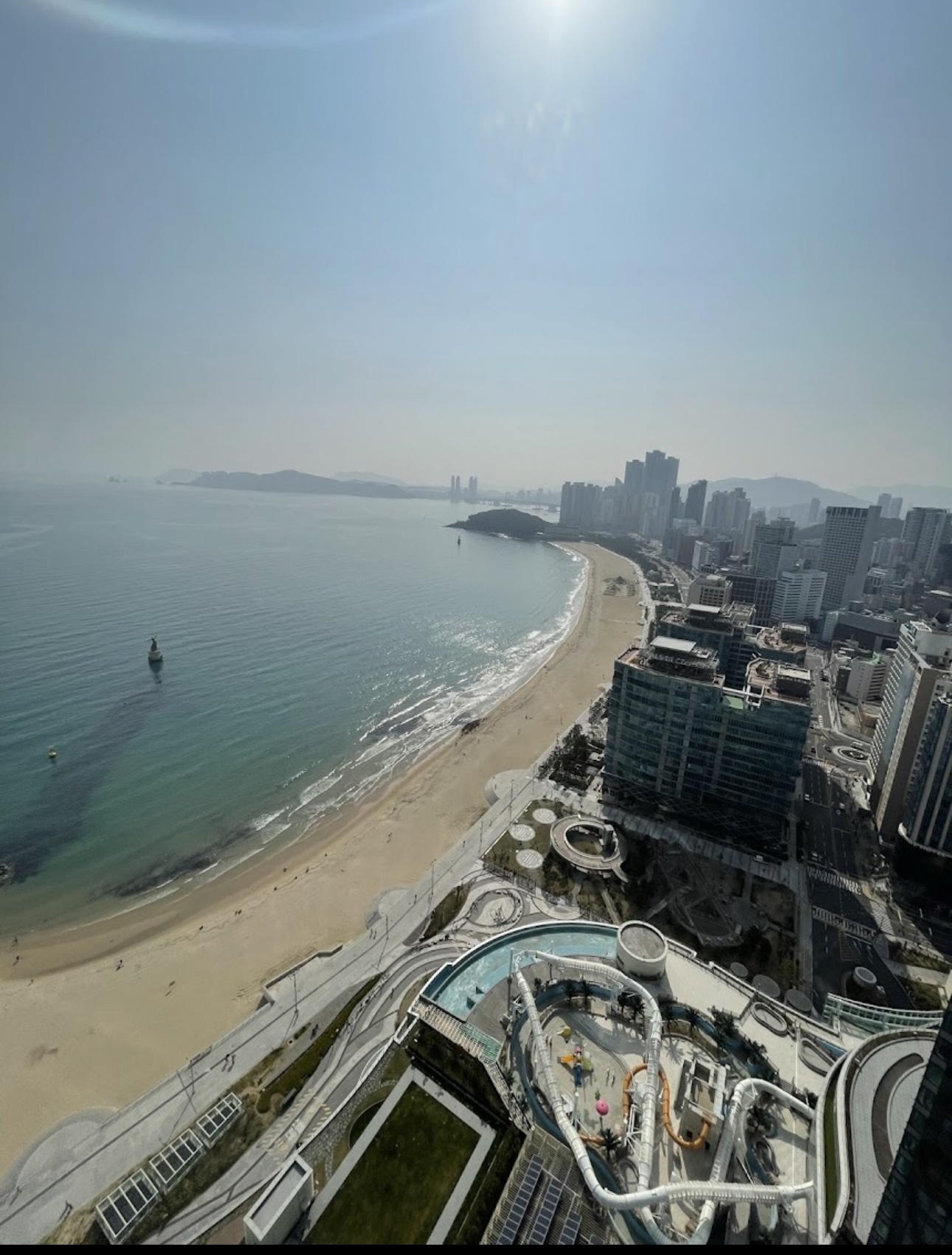 海雲台エルシティ。海岸沿いで海が見渡せる上に内装もジャグジーが2つ完備