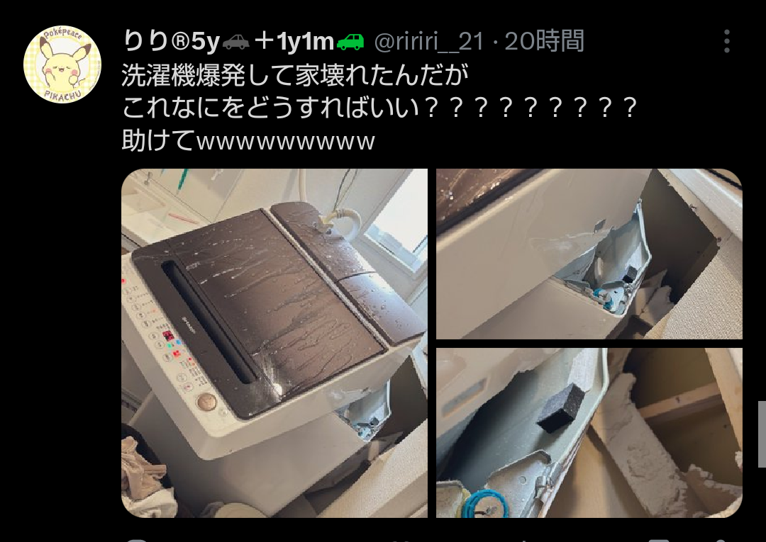 - さすがに洗濯機だけじゃ爆発しないだろ