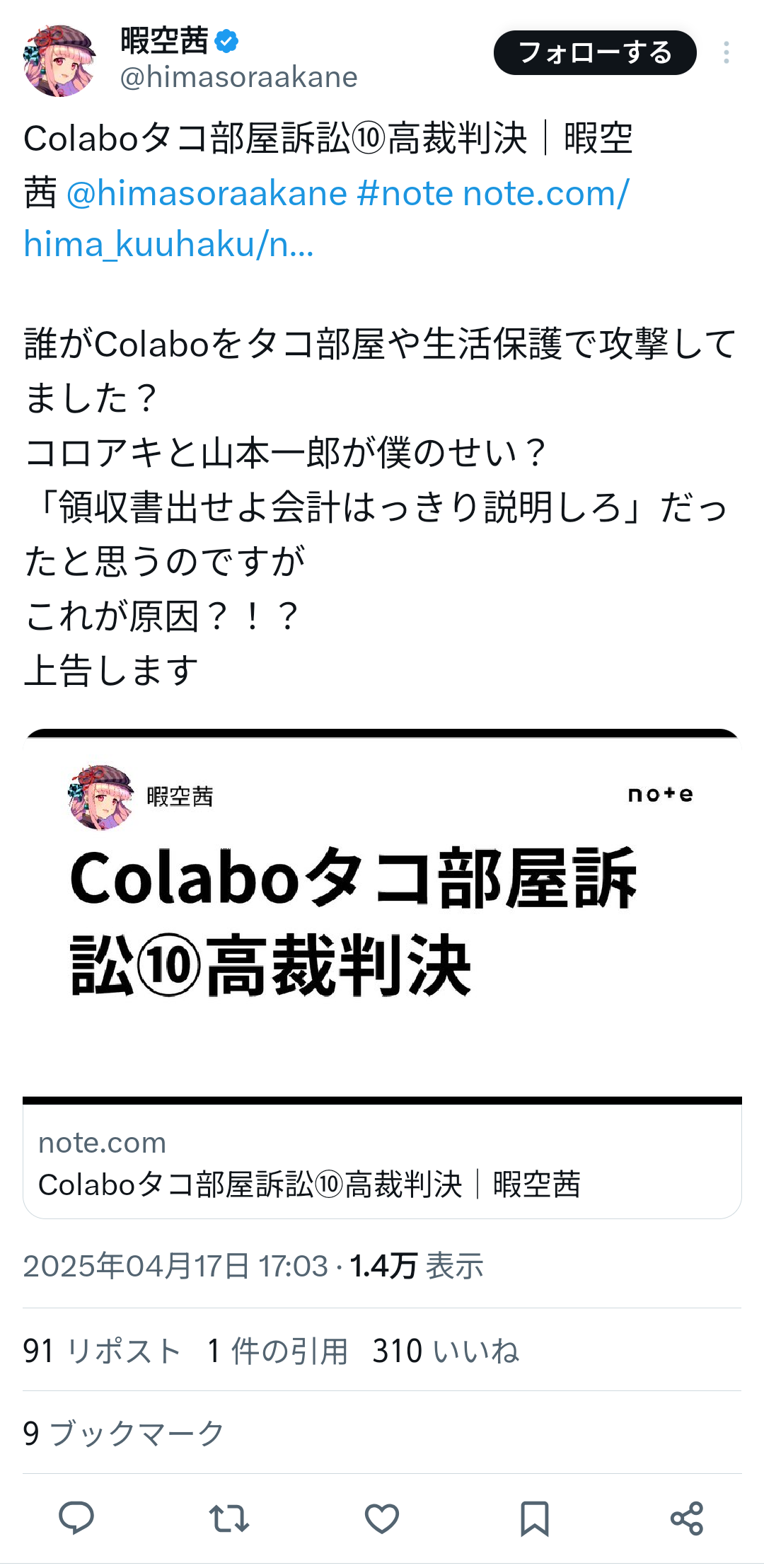 リーガル強者の暇空先生ならば当然知ってると思うけど民事の最高裁は事実認定を扱わないんよ