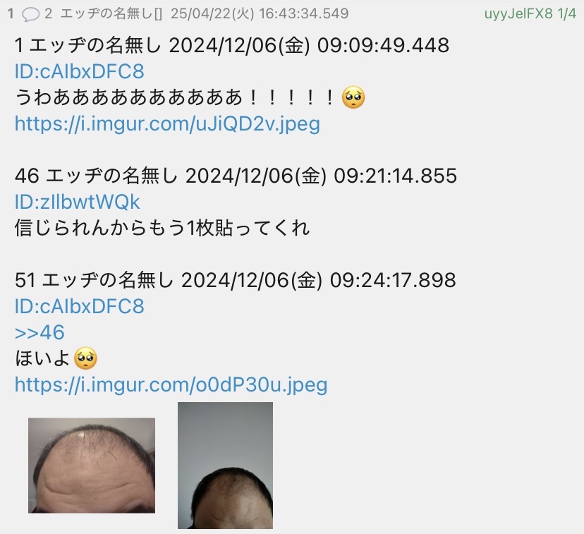 【画像】ギリギリ薄毛のエッヂ民、咽び泣く🥺