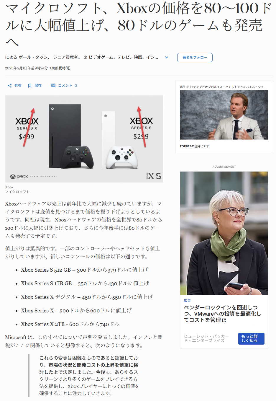 4月末から5月前半に値上げがあるってWindows Central もXBOXERAとPURE XBOXも海外のファンサイトはみんな3月くらいから予測してたよな