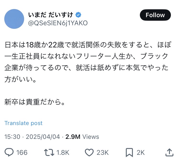新卒でも日本は学歴社会だから良い大学じゃないとデカい安定してる大企業に入れないけどな - 9 名前:ひみつの名無しさん 投稿日時:2025/05/02(金) 02:34:57.08 ID:0Ds2e0Zu0