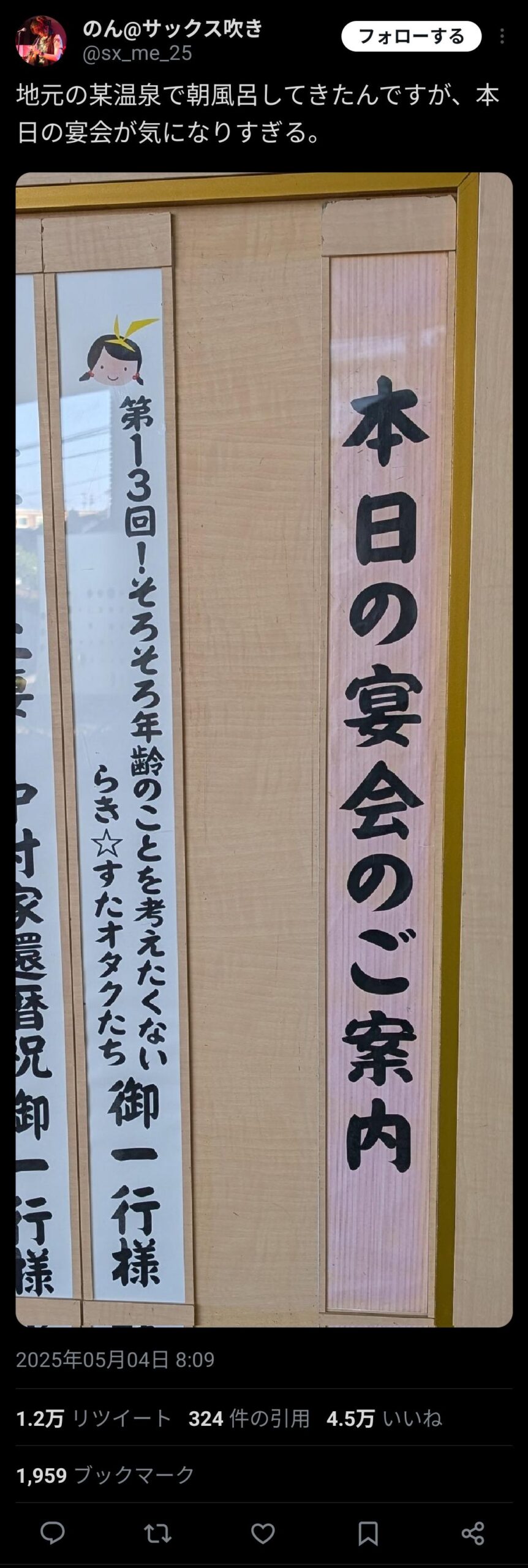 - 12 名前:ひみつの名無しさん 投稿日時:2025/05/04(日) 15:34:32.99 ID:d9Eks6M40