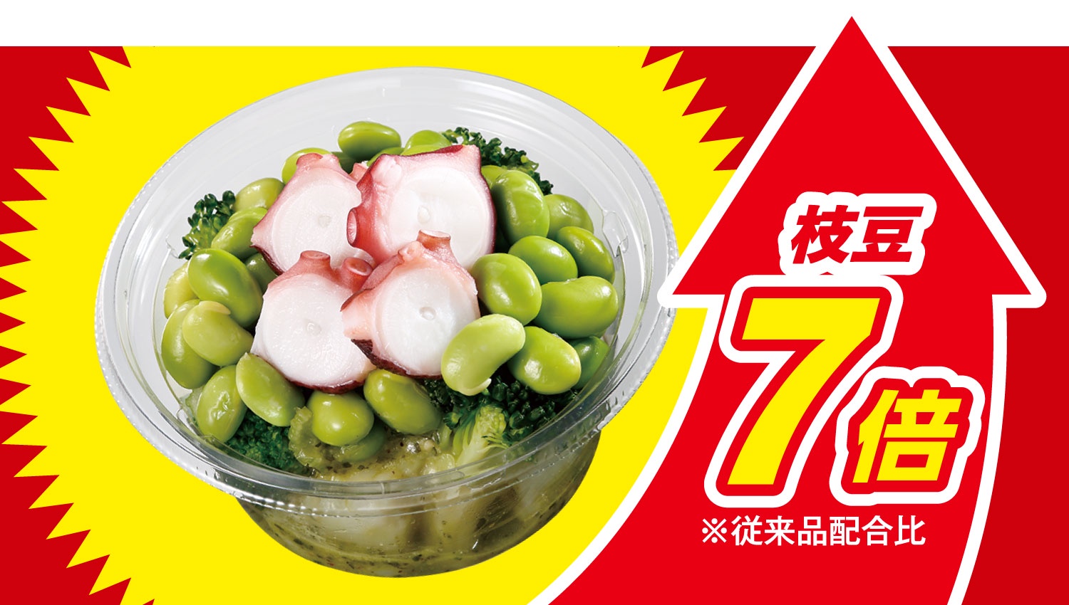 配合比率7倍なんだからタコとかブロッコリーの量を減らして枝豆の率を7倍にしてるんでしょ🥺絶対量が7倍とはどこにも書いてないぞ😭