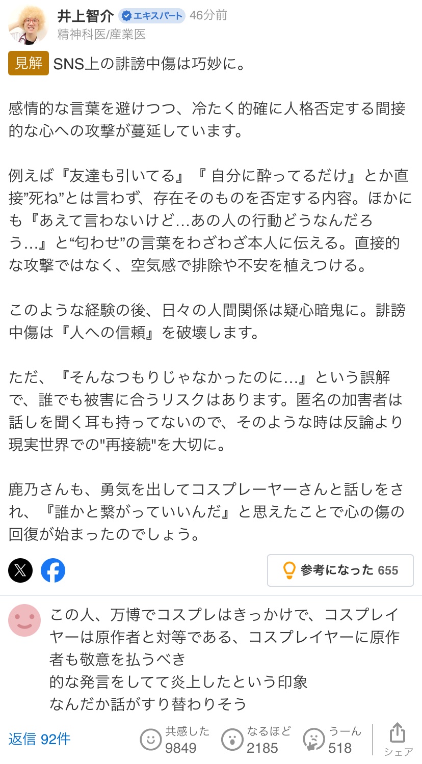 “万博コスプレ”で炎上→「はよ4ね」「ゴミ」と誹謗中傷の嵐→殺害予告まで…「心身の限界です」