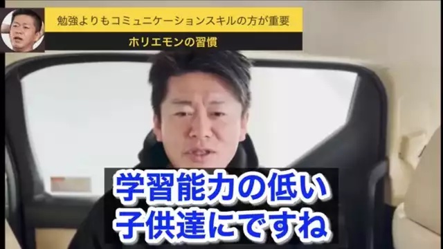 - 堀江「スポーツにしろ勉強にしろコミニュティの中で下位にいるのってすごく辛いんだよ、病んでる子たくさんいると思うよ。学校の勉強なんて社会に出て役に立たないんだから中学受験なんて強要するなよ」