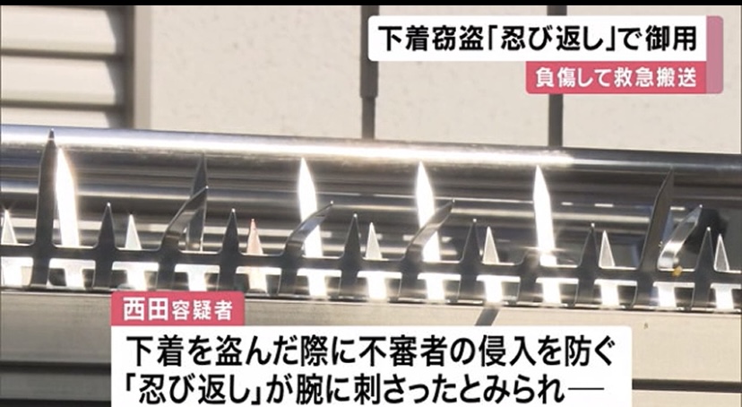 下着泥棒さん、「忍び返し」にひっかり大量出血、緊急搬送されたのちに逮捕