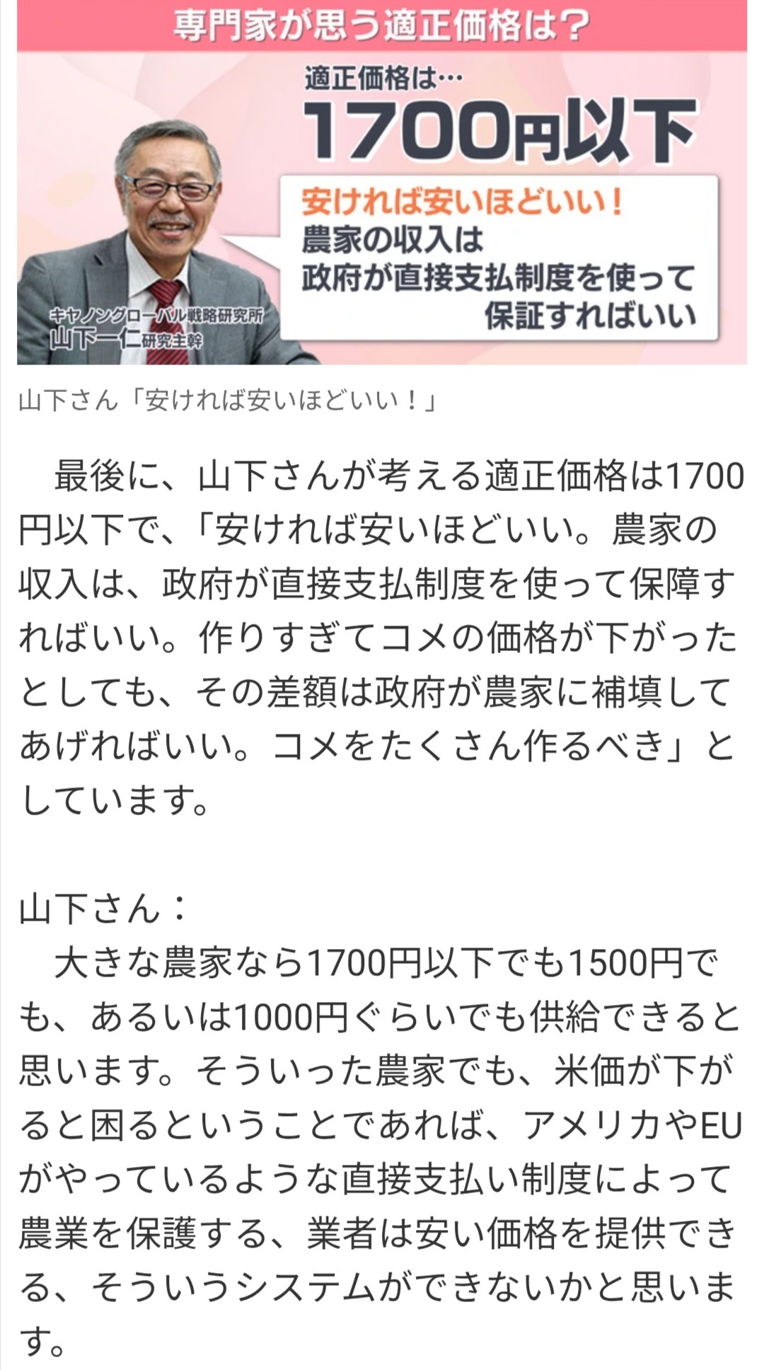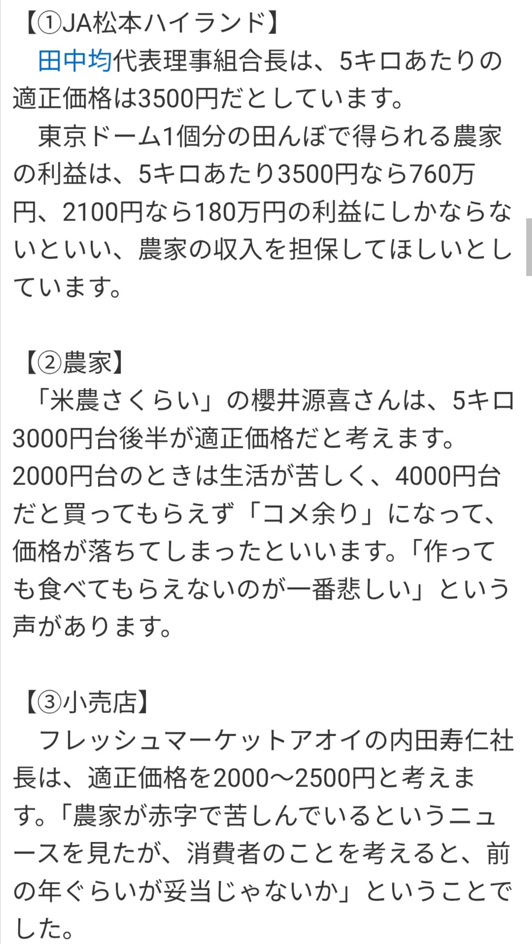 - 農家「国民は気の毒」「自分達は高値では売ってない」