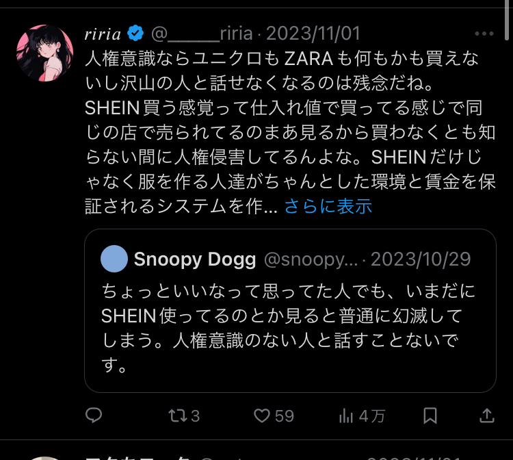 - 人権についての美学や信条あるアテクシが未だにSHEINを利用し続けてる理由はこれわよ!的な