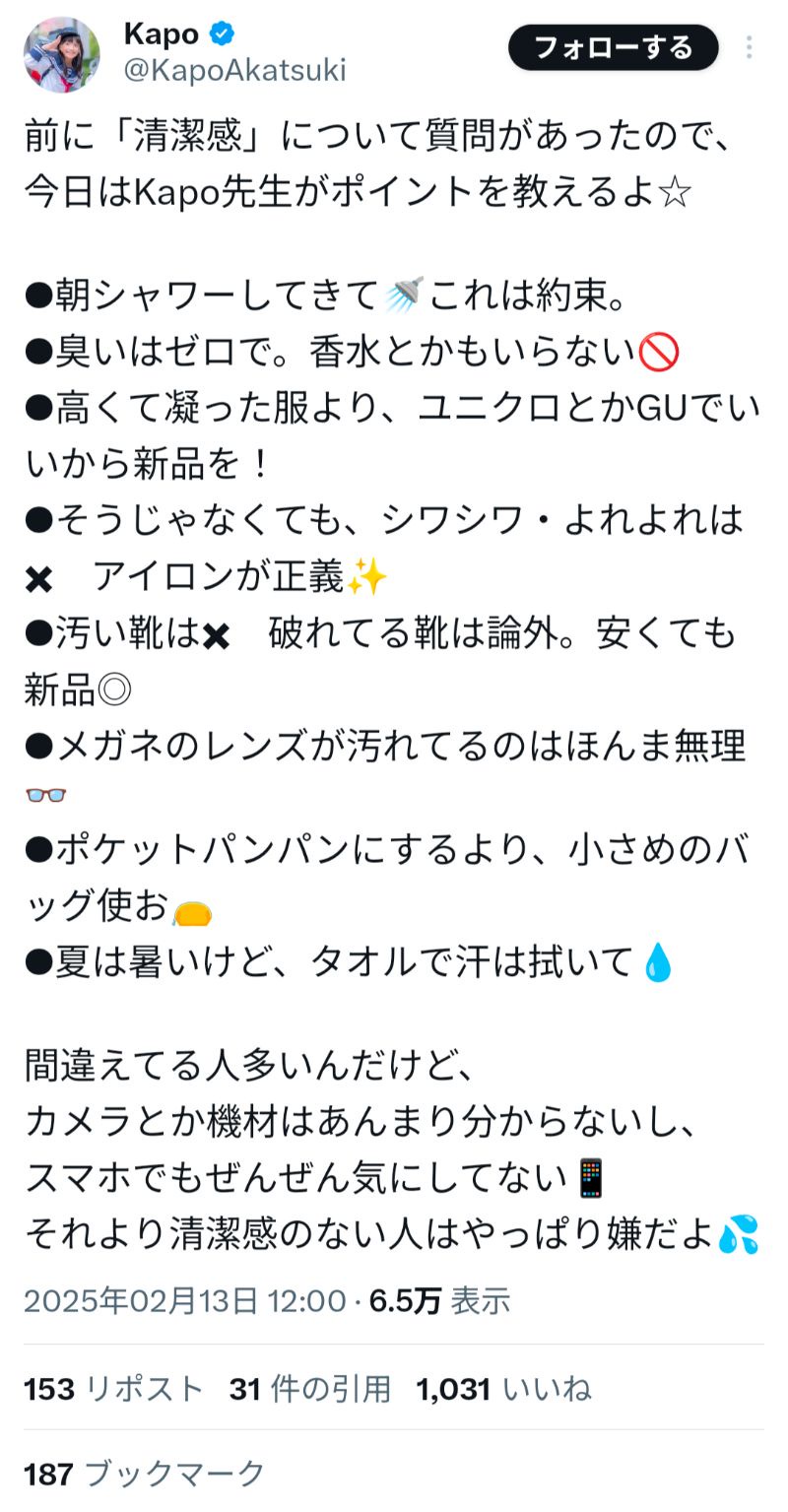 現役コスプレイヤー「『清潔感』がなんなのか分からないバカ、聞け」👉10万いいね