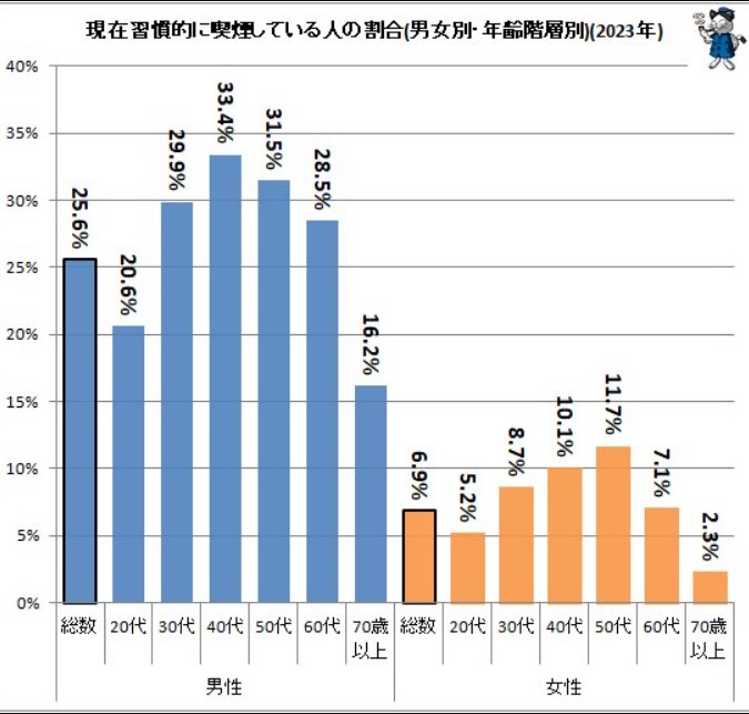 男全体で25%ってなんか信じられんけど、75%が吸ってないんだから違法化で押し切れるな