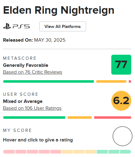 期待のエルデンリング新作、Amazon評価1.5、ユーザースコア6.6でソウルブランドが終わるwwwwww
