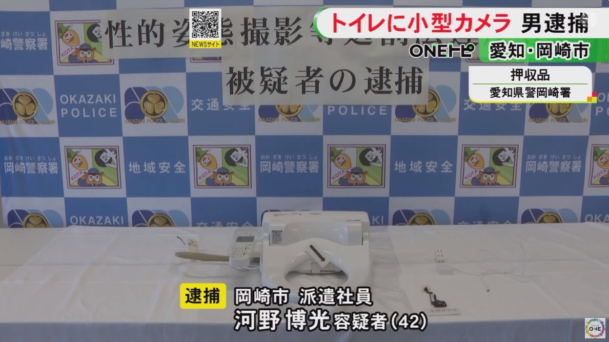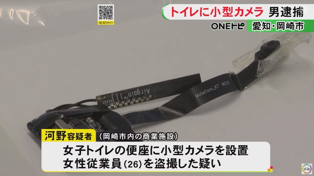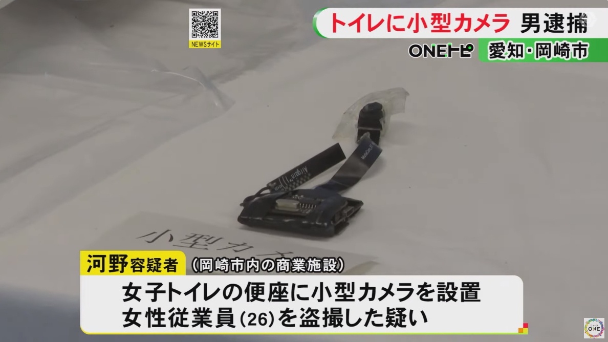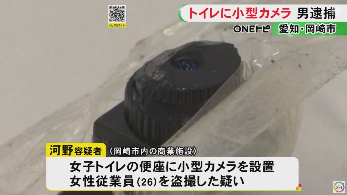 警察によりますと、河野容疑者は2025年2月、岡崎市内の商業施設で女子トイレに侵入して便座に小型カメラを設置し、トイレを利用した女性従業員(26)を盗撮した疑いが持たれています。