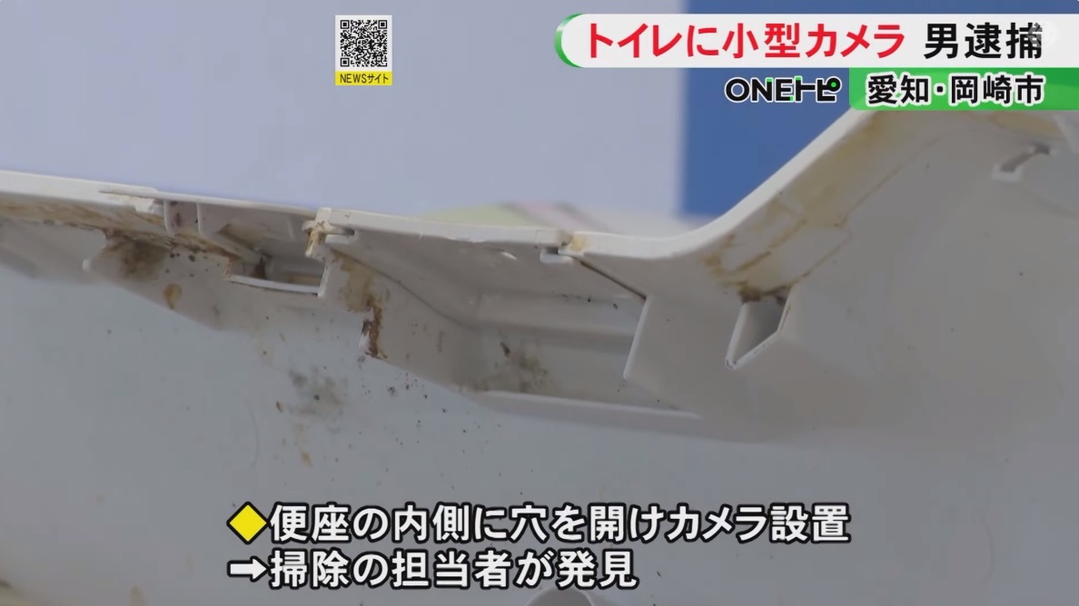 カメラは便座の内側に開けた小さな穴の中に隠されていましたが、掃除の担当者が穴に気付き、カメラが見つかっていました。