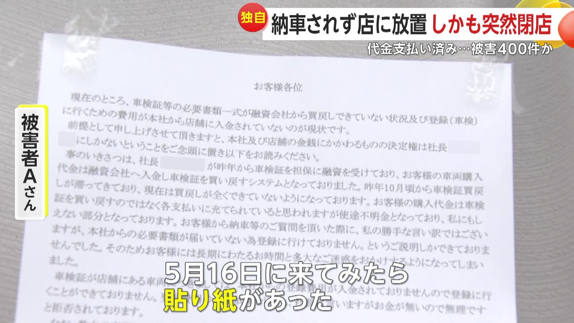 【独自】「購入車がスクラップ」全国14店舗の中古車販売店「カーネル」突然閉店で納車トラブル…従業員給料未払いも 社長「今月中に全て返金を」