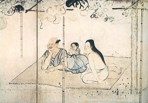 ほんの数十年前までは夏は裸、下着一枚で過ごすことも珍しくなかった。久隅守景『夕顔棚納涼図屏風』