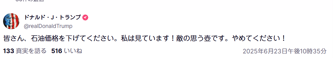 トランプ「みんな、原油価格を下げろ!敵の思う壺だ、やめろ!」