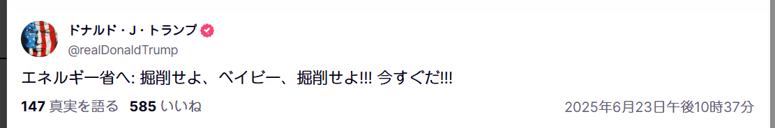 - トランプって原油を掘って掘って掘りまくる!とか言って当選しなかった?