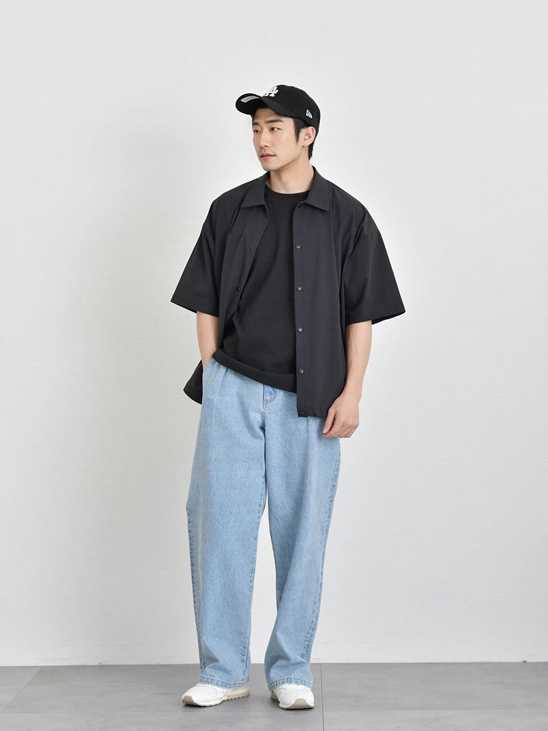 ゆったりシャツをアウターにした春夏スタイル