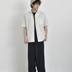 インナーに白Tシャツを取り入れることで、清涼感のあるスタイリングに仕上がります。