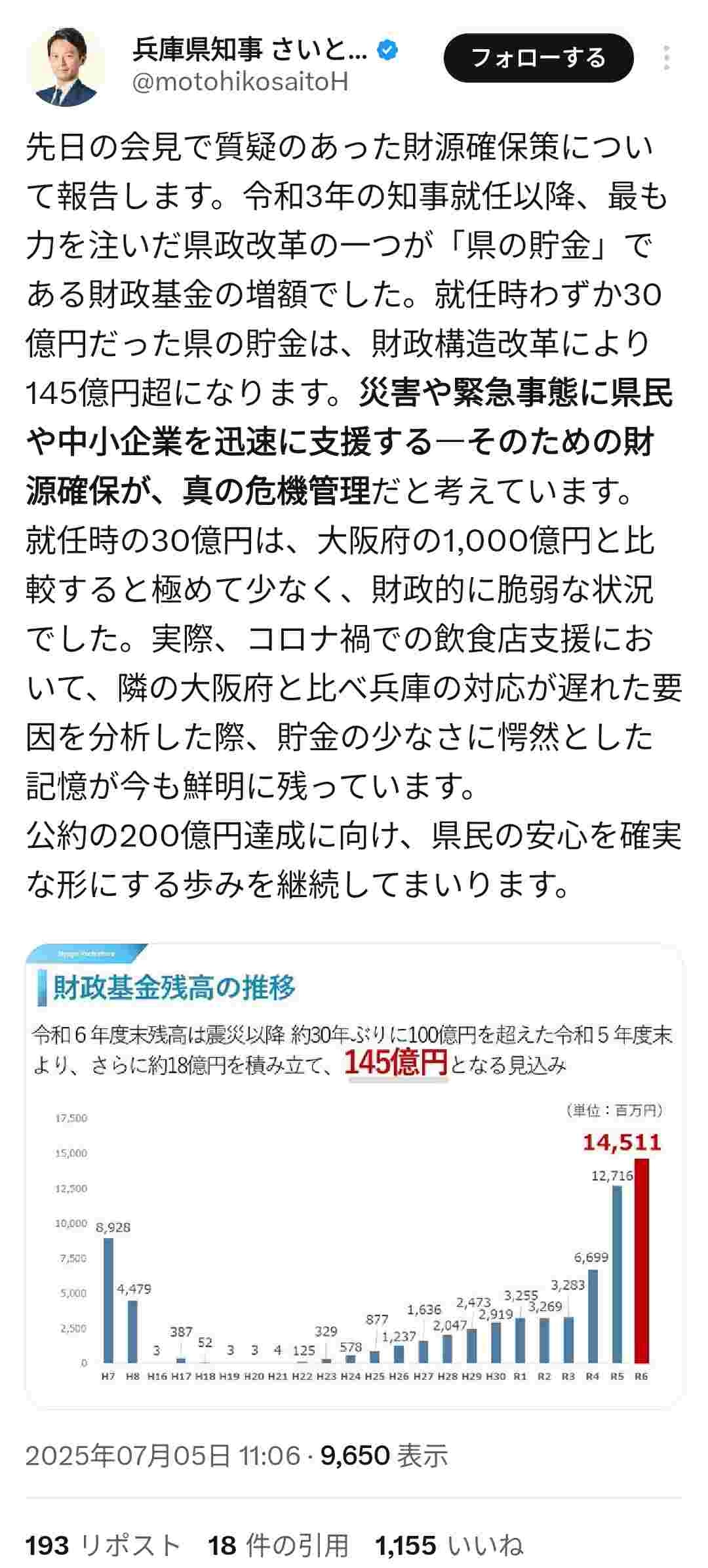 斎藤「県の財源を使わずに寄付だけで優勝パレードを開催出来ました!」←これ