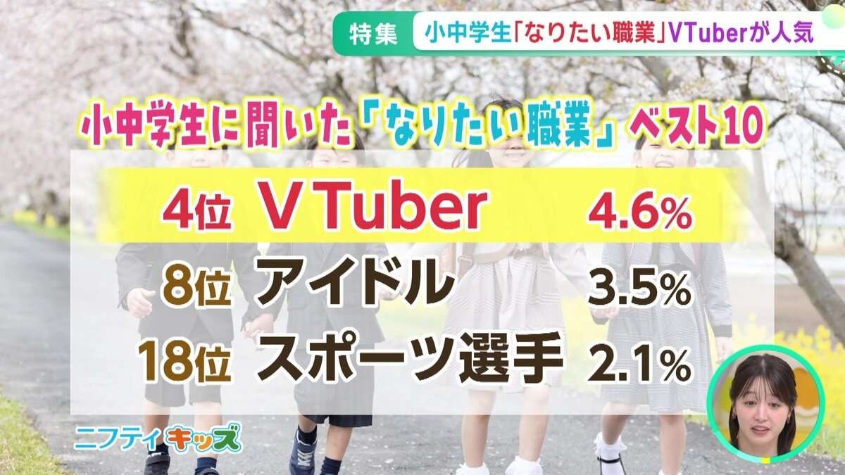 Vtuberという仕事、子供たちに受け入れられる「将来なりたい職業」で4位にランクイン!