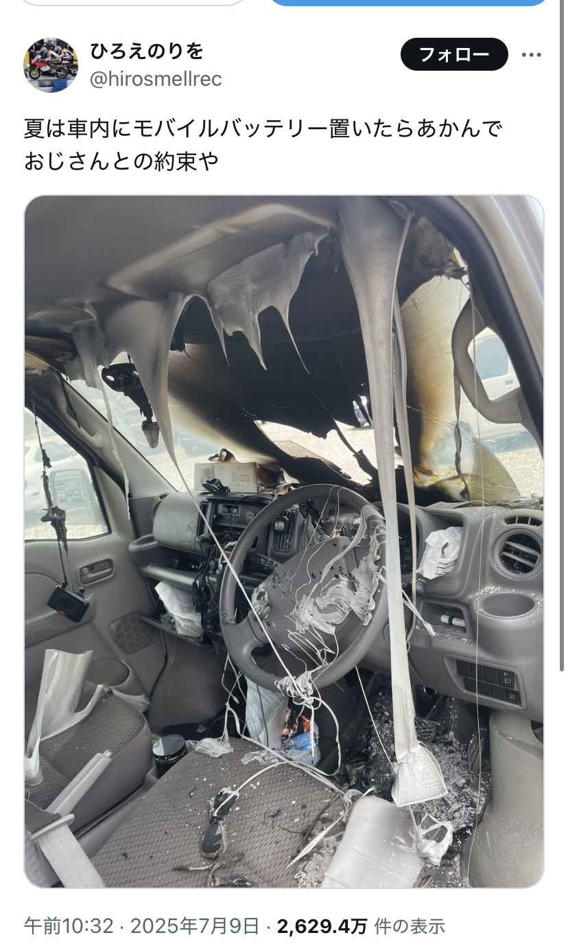 今時何でもかんでもリチウムイオンだから車内に置くものはよくよく見た方が良い