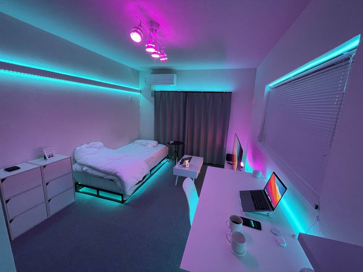 神秘的な照明が散りばめられ、部屋全体が近未来のような世界観に様変わり!