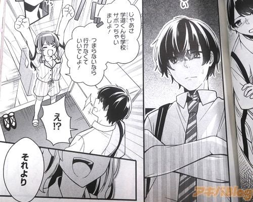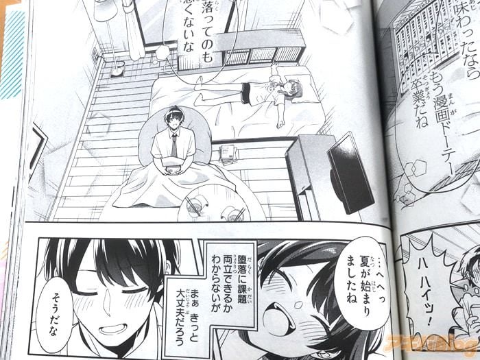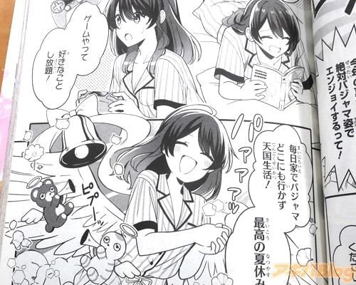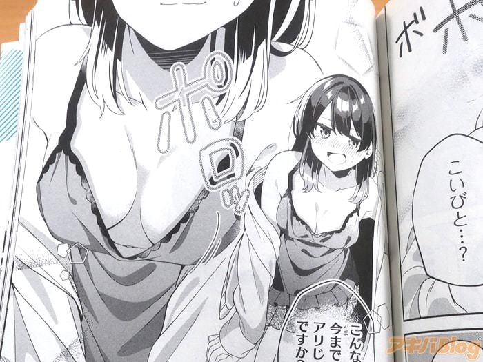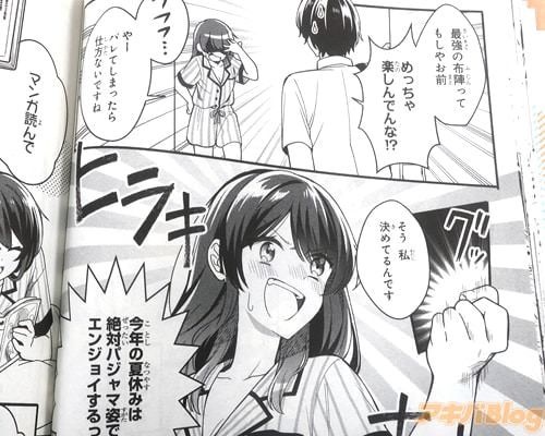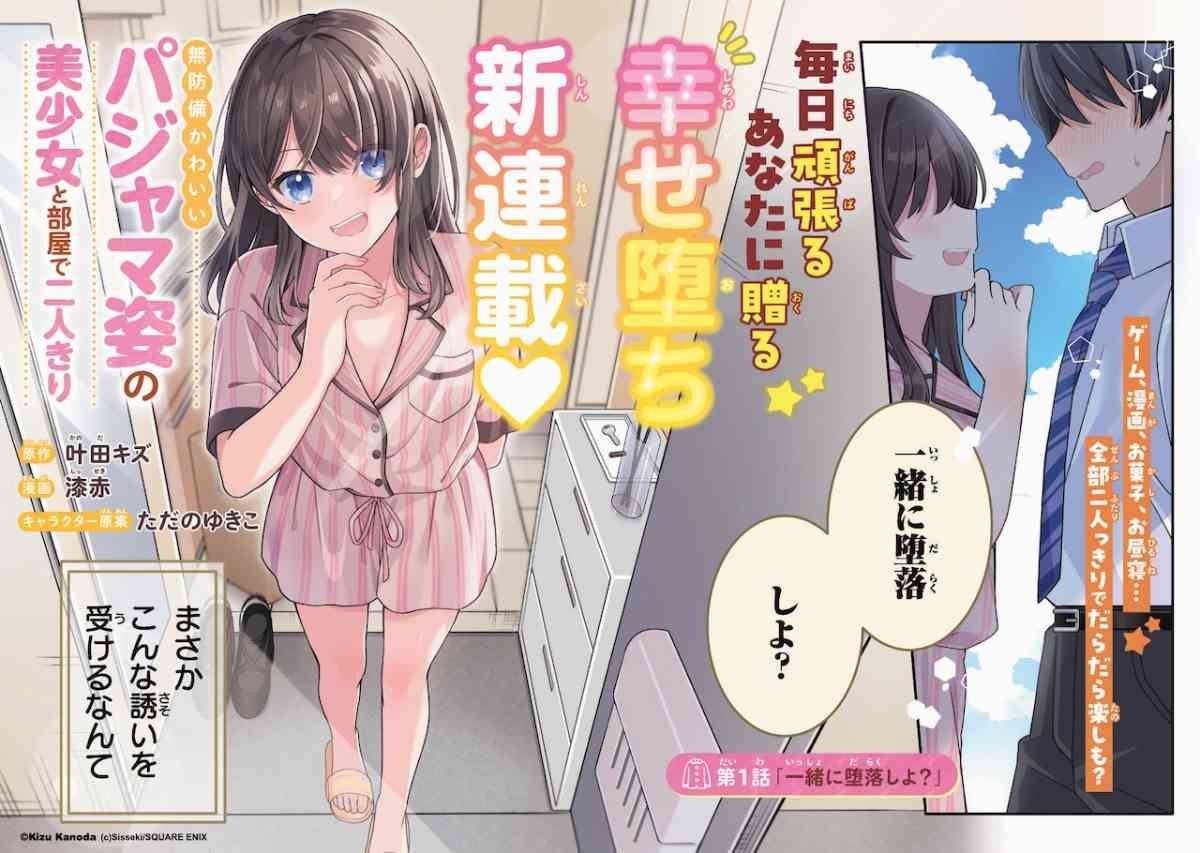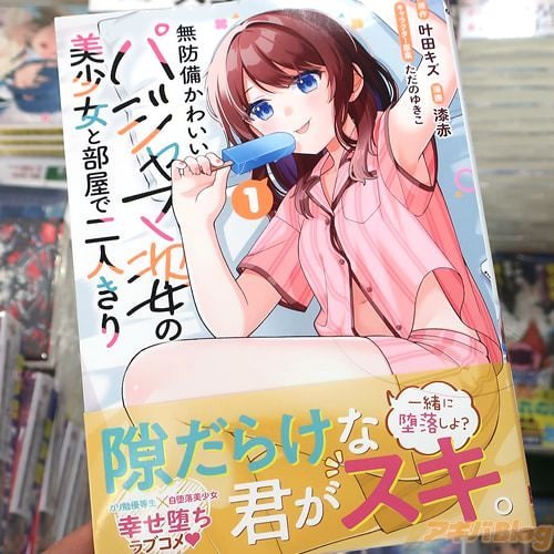今回発売になったコミカライズ「無防備かわいいパジャマ姿の美少女と部屋で二人きり」1巻【AA】の第1話から第4話を収録し、裏表紙は『可愛いパジャマ姿だらけの至福の一冊です?』、オビ謳い文句は『隙だらけな君がスキ』、『一緒に堕落しよ?』、『ガリ勉優等生×自堕落美少女、幸せ堕ちラブコメ?』だった。