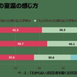 職場の冷房設定温度は、全体平均では「25.7℃」。一方、自分が快適と感じる職場の冷房設定温度は全体で「25.2℃」。その差0.5℃と、首都圏で働く方たちの職場では、おおむね快適な環境に近い状況であることがうかがえますが、先に見た図表1(適温と感じないことが多い人が、全体で6割超)とは矛盾するように思える結果となりました。これは、同じ設定温度であっても、人やパソコンの密集度、送風口の位置などの環境要素や、暑い外からオフィスへ入った時、終日デスクワークをしている時といった条件によっても室温の感じ方は異なるためかもしれません。