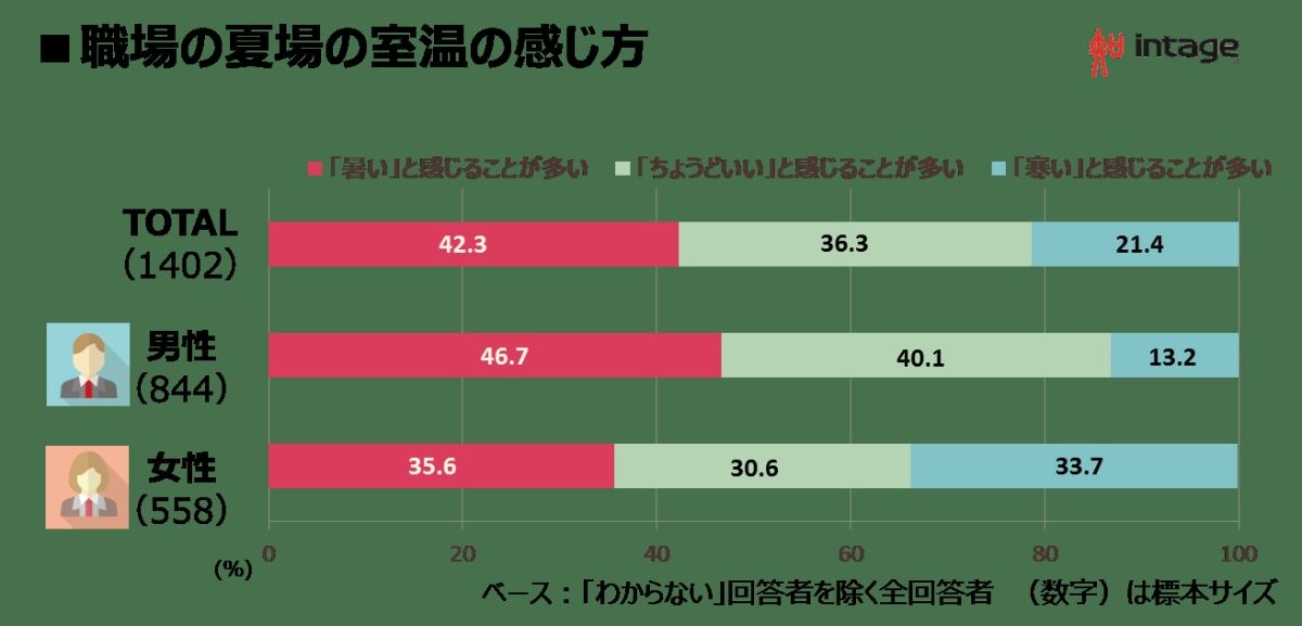 職場の冷房温度実態 ~“がまん”の男性、“快適追求”の女性?!快適に過ごすためのみんなの対策とは? - 知るギャラリー by INTAGE「クールビズ」とともに、世間一般に広く認知されている夏の「室温28℃」。実際の、職場での設定温度、快適に過ごすためにの行動やグッズとは?gallery.intage.co.jp