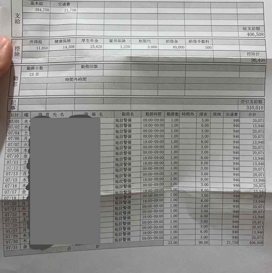 てか深夜料金含みの合計を基本給にしてたりよく分からん明細だな