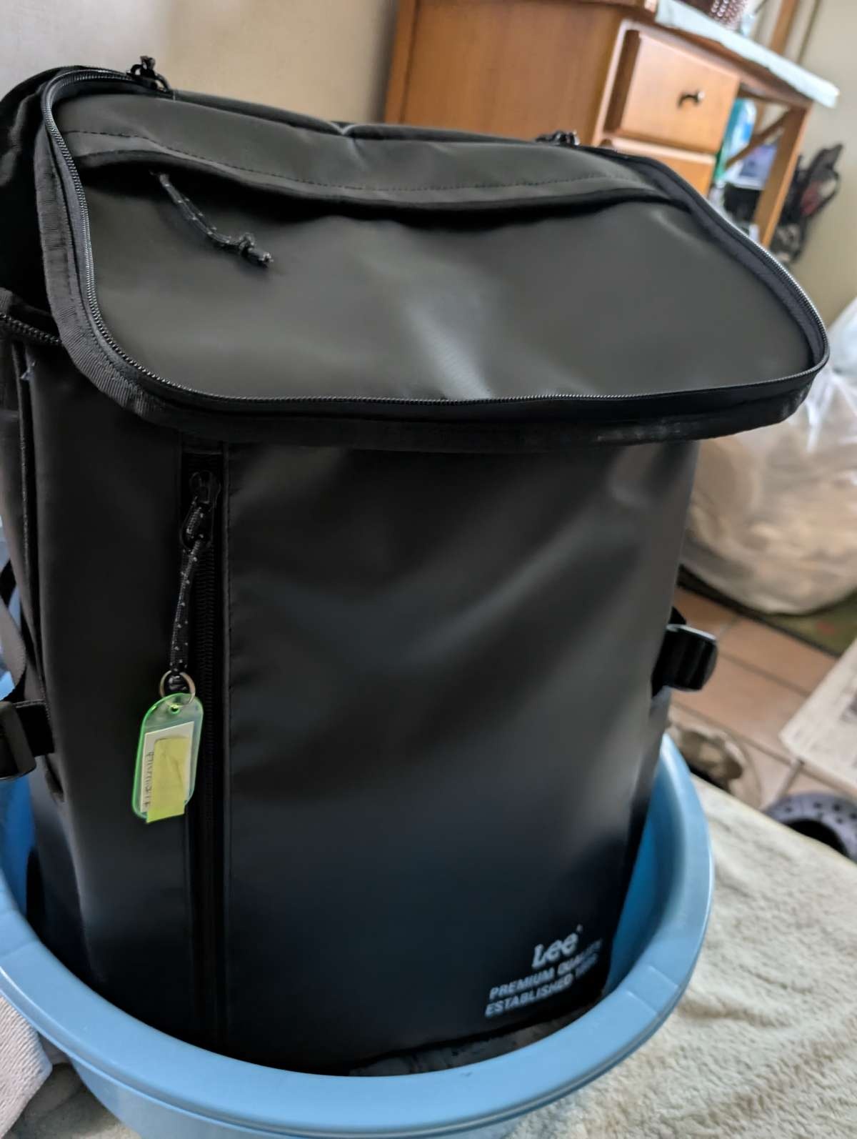 画像のリュックに迷子札みたいなの付いてる