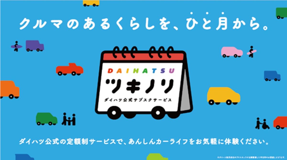 ダイハツ工業は7月15日、ダイハツ認定中古車を月々定額で利用できるサブスクリプションサービス「ツキノリ」の本格展開を開始すると発表した。「ツキノリ」の月額利用料金は2万5000円〜で、対象者は個人(法人名義は不可)、利用期間は最短1か月〜最長11か月まで月単位で任意に設定可能となるサービス。